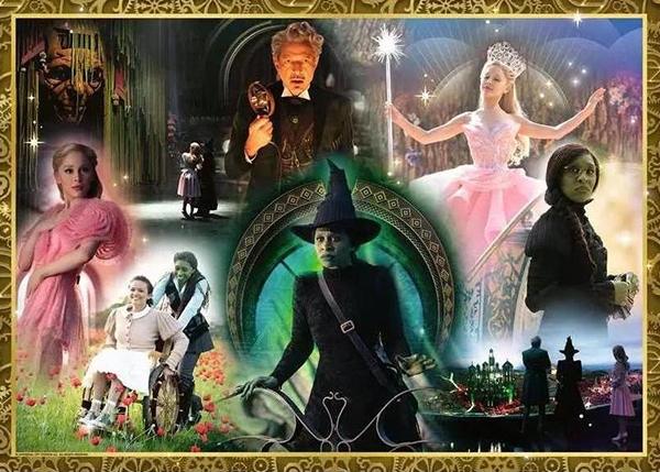 At Wicked Movie -palapeli 1000 palaa on kollaasi Wicked-elokuvan kohtauksista. Wicked kertoo Ihmemaa Ozin noitien tarinan.