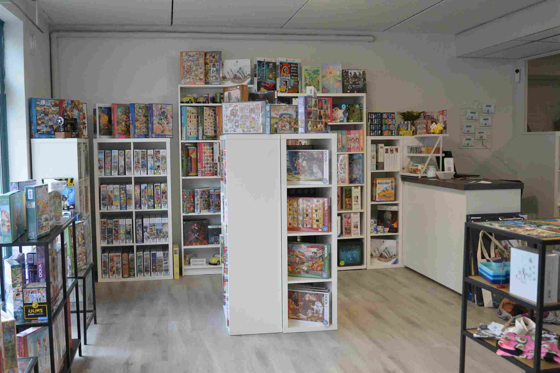 Myymälästä löytyy koko verkkokaupan palapelivalikoima sekä lisäksi joitakin tuotteita, joita ei verkkokaupassa ole.