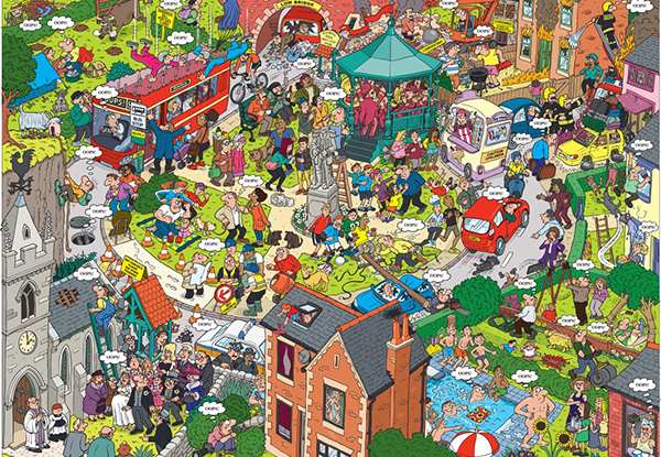 Martin Berryn kuvittamassa palapelissä sattuu ja tapahtuu vaikka mitä. Mikä voisikaan mennä pieleen. Oops! näkyy häissä. Oops tulee palomiehen suusta.