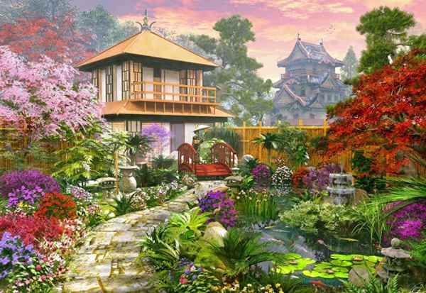 Japan Garden palapeli 1000 palaa on ranskalaisen Bluebirdin valmistama. Japanilainen puutarha on Dominic Davisonin kuvittama.
