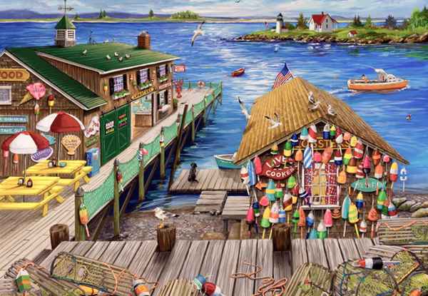Lobster Shack palapeli 1000 palaa on ranskalaisen Bluebirdin valmistama. Kuvittaja Joelle McIntyre vie palapelin pelaajan merellisiin maisemiin.