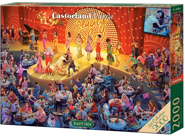Beauty show palapeli on Castorlandin 2000-palainen. Kuvassa kauneuskilpailut, jossa upeat naiset juhlapuvuissaan. Tyyli on vintage. Castorlandin Art Collectio -sarjaa.