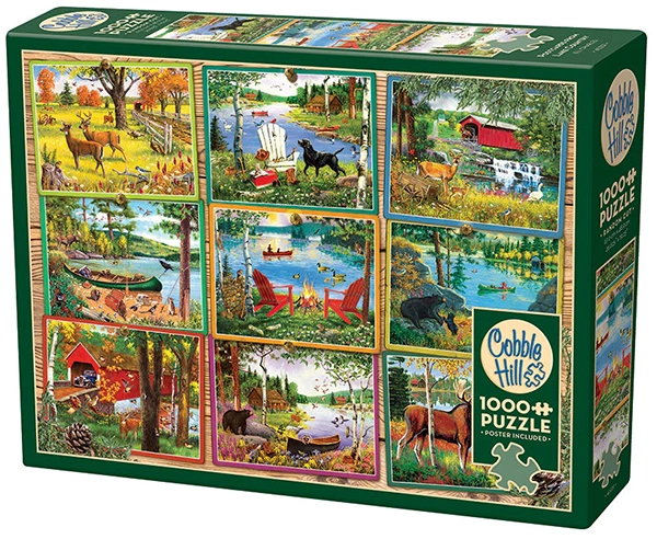 Postcards from Lake Country palapeli 1000 palaa on Cobble Hillin. Palapelin kuvassa on yhdeksän maalaismaisemaa kuin postikorteissa.