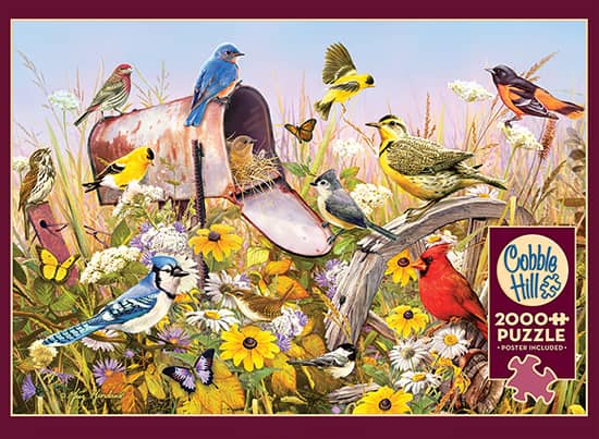 Field Song palapeli 2000 palaa on kanadalaisen Cobble Hillin lintu-aiheinen palapeli. Greg Giordanon kuvittamassa kuvassa monet lintulajit ovat parveutuneet niitylle. Paloja voit lajitella lintujen sävyjen mukaan, sitten vaikka kukat ja taivas erikseen.