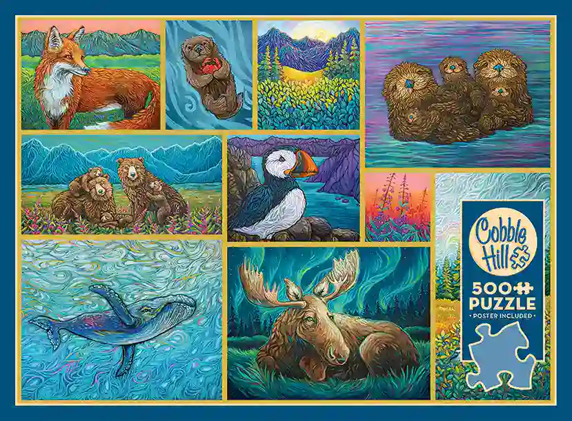 Alaskan Animals palapeli 500 palaa on Cobble Hillin Alaskan eläimet -palapeli.