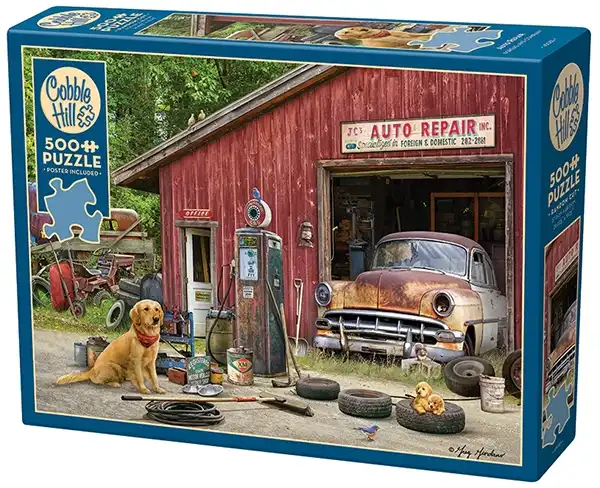 Auto Repair palapeli 500 palaa on kanadalaisen Cobble Hillin valmistama autokorjaamo-aiheinen palapeli. Kultainennoutaja istuu Auto repair -kyltillä varustetun vajan edessä. Pihalla ja vajassa on ruosteinen vanha auto. Bensapumppukin on päässyt ruostumaan.