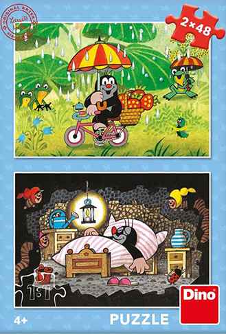 Little Mole’s Day palapeli 2×48 palaa kuvissa on monille tuttu animaatiohahmo Pikku Myyrä. Toisessa palapelissä Pikku Myyrä viettää sadepäivää ja toisessa myyrä nukkuu.