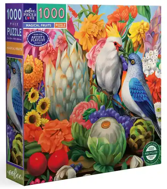 eeBoo Magical Fruits palapeli 1000 palaa on amerikkalainen palapelimerkki, jonka palapeleissä on minimaalisen vähän palapelipölyä.