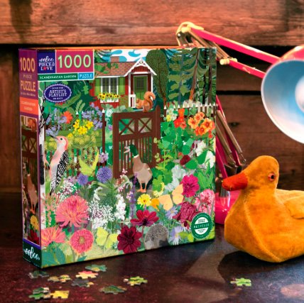 eeBoo Scandinavian Garden palapeli 1000 palaa on eläimet puutarhassa -aiheinen palapeli, jonka on kuvittanut Cecilia Pettersson.