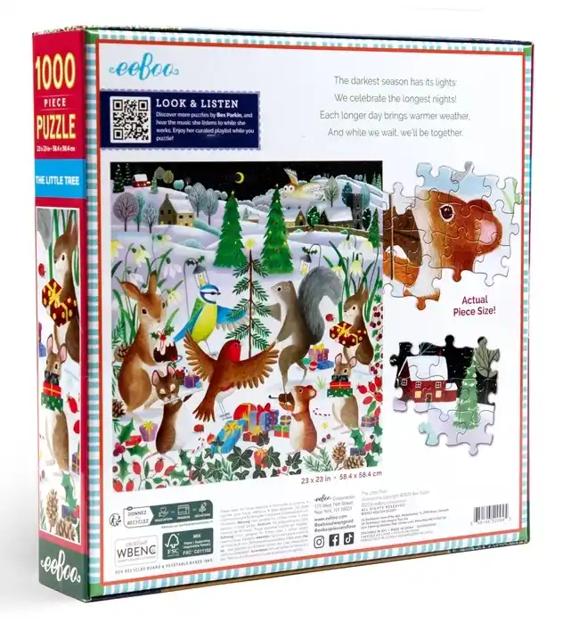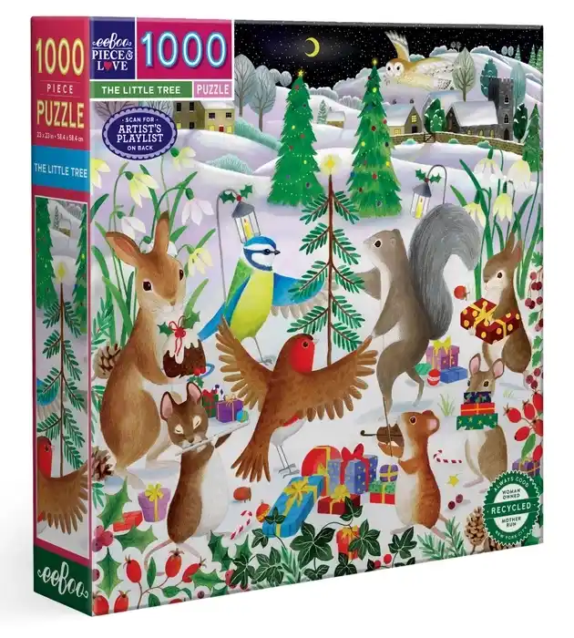 The Little Tree palapeli 1000 palaa on eeBoon eläinaiheinen joulupalapeli, jonka on kuvittanut Bex Parkin. Pieni joulupuu -palapelissä ihastut varmasti eläinten lisäksi ihaniin väreihin ja lämpimään tunnelmaan.