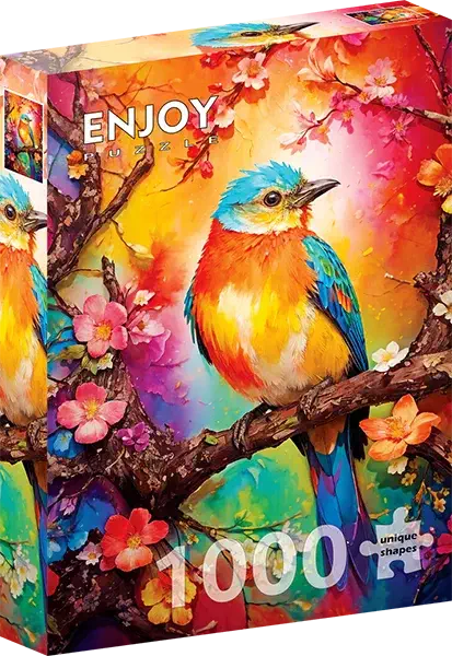 Colorful Birdie palapeli on Enjoyn 1000-palainen lintupalapeli, jonka kuvassa pikkulintu istuu puun oksalla.