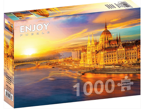 Hungarian Parliament at Sunset palapeli on Enjoyn 1000-palainen. Kuvassa Unkarin parlamenttitalo ilta-auringossa.
