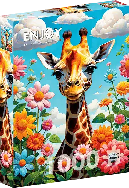 Cute Giraffe palapeli on Enjoyn 1000-palainen aiheena kirahvi, kukat ja ihanat poutapilvet.