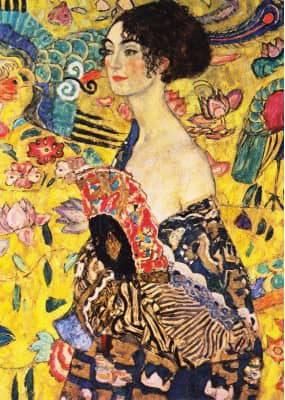 Lady with a Fan palapeli 1000 palaa on Enjoy Puzzlen valmistama. Taidepalapelin kuva on Gustav Klimtin maalaus, jossa nainen pitää rennosti viuhkaa kädessään.