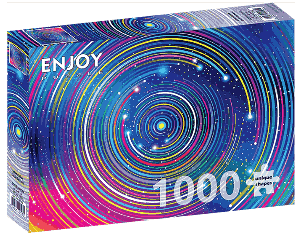 Interstellar Encirclement palapeli on Enjoyn 1000-palainen. Kuvassa värikkäät raidat muodostavat kuvan keskelle pienevän ympyräkuvion.