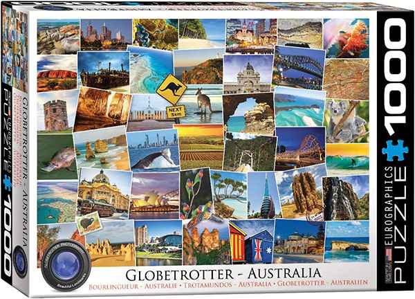 Globetrotter Australia palapeli 1000 palaa on kanadalaisen palapelimerkki Eurographicsin valmistama maisemapalapeli. Kuvaan on koottu valokuvia eri puolilta Australiaa. Kuva on kuin muistitaulu, johon on kerätty matkamuistoksi valokuvia: koala, kenguru, rakennuksia ja maisemia.