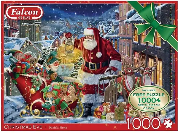 Christmas Eve palapeli 1000 palaa on brittiläisen Falconin palapelipakkaus, jossa on 2 kappaletta 1000-palaista joulupalapeliä samassa laatikossa. Toisessa palapelissä joulupukki ja porot ovat jakamassa juuri lahjoja, toisessa torille on kokoontunut ihmisiä laulamaan.