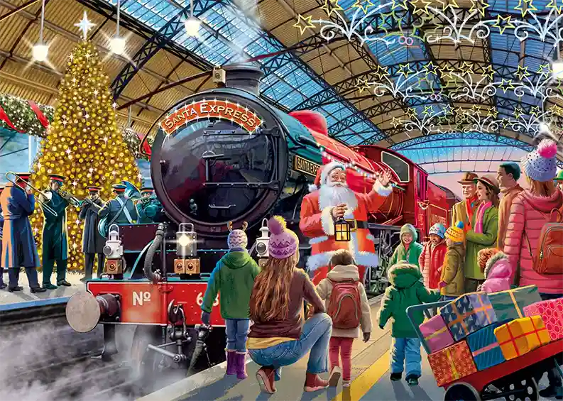 Tämä sydäntä lämmittävä palapeli vangitsee jouluaaton taian, kun perheet kokoontuvat lumipeitteiselle asemalle tapaamaan joulupukkia. Höyryjuna on valmis lähtöön, valot tuikkivat ja juhlatunnelma on täydellinen.