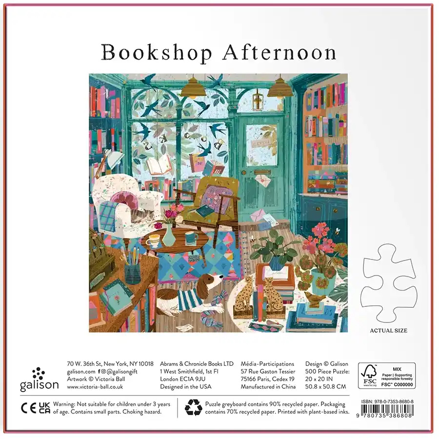 Bookshop Afternoon palapeli 500 palaa on Galisonin kirjakauppa-aiheine palapeli, joka vie lämmintunnelmaiseen kirjojen ystävän kauppaan.