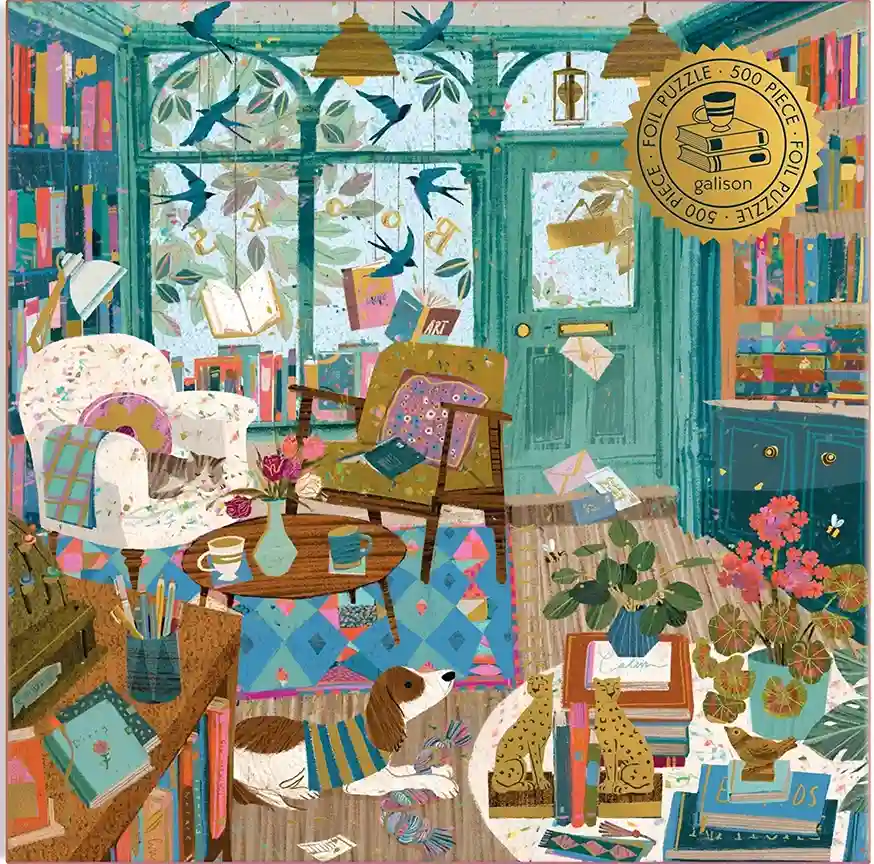 Tässä 500 palan palapelissä palat on koristeltu kimaltelevilla kultafolioyksityiskohdilla. Tämä Galisonin Iltapäivä kirjakaupassa -palapeli on juuri sopivan tasoinen haaste koko perheelle tuntikausia kestävään yhteiseen palapelihetkeen! Mukana tulee posteri palapelin kuvasta.
