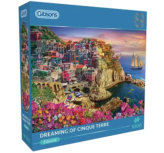 Dreaming of Cinque Terre palapeli 1000 palaa on brittiläisen Gibsonsin upea maisemakuva Cinque Terrestä.