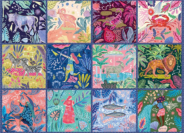 Zodiac jungle palapeli 1000 palaa on Gibsonsin horoskooppiaiheinen kollaasikuva.