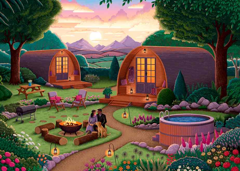 Falcon de Luxe Glamping 1000 palan palapeli on sekä värikäs että tunnelmallinen lahjavalinta palapelien ystävälle.