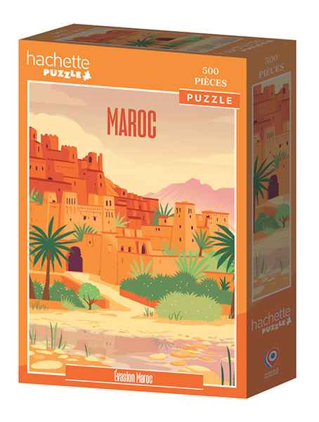 Hachette Évasion Maroc palapeli 500 palaa vie palapelin kokoajan Marokkoon. Marokko-palapelin on kuvittanut Nicolas Galkowski. Valmistajana ranskalainen palapelimerkki Hachette.