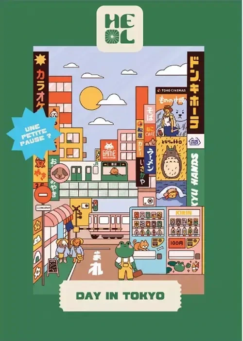 Tämä Les éditions Heol’n valmistama ja Niniwanted’n kuvittama palapeli on valmistettu Ranskassa. Piirroskuvituksessa Tokyon maiseman täyttää kerrostalot, valomainokset, metrot ja junat.