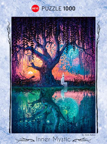 Broken Worlds -palapeli 1000 palaa on saksalaisen Heyen valmistamaa Inner Mystic -sarjaa. Kuvittaja Andy Kehoen kuvassa mystinen puu, jonka alla istuu vaalea hahmo.
