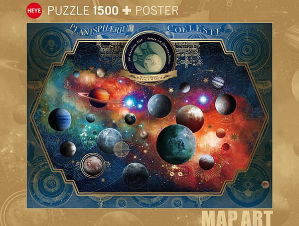 Space World palapeli on Heyen 1500-palainen, joka kuuluu Map art -sarjaan. Planeetat-palapeli on André Sanchezin upea kuvitus avaruudesta ja planeetoista.