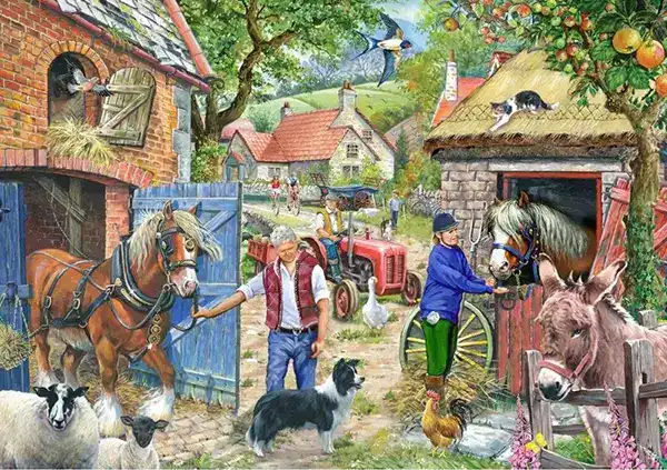 HOP Appletree lane -palapeli 1000 palaa on brittiläisen House of Puzzles (HOP) valmistama. Hevosaiheisen-palapelin on kuvittanut Keith Stapleton. Kuvassa nainen on lähdössä ratsastamaan ja mies on valjastanut hevosen. Aasi katsoo aitauksessa.
