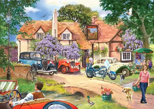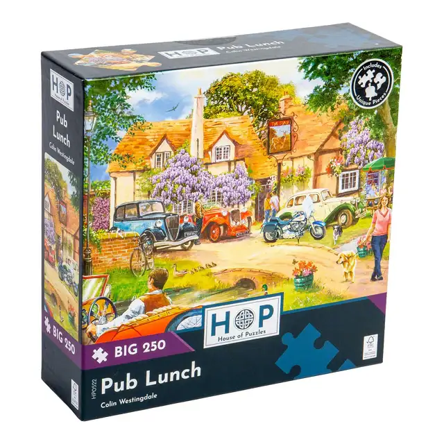 Pub Lunch palapeli 250 palaa on on brittiläisen House of Puzzles (HOP) valmistama nostalgia-aiheinen palapeli. On kesäinen päivä ja maaseutupubin eteen on ajettu vanhoja autoja ja moottoripyörä. Sorsaperhe tallustelee pihalla.
