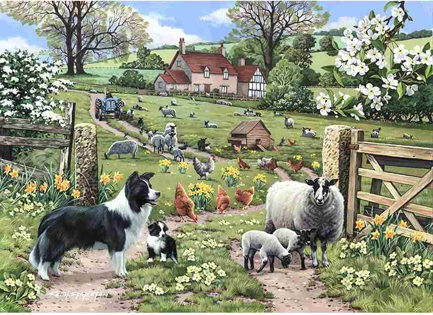 Tämän 1000 palan koirat ja lampaat -aiheisen palapelin on kuvittanut Keith Stapleton.