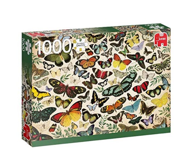 Perhoset-palapeli. Suomalaisia ja trooppisia perhosia, kuten ritariperhonen ja sitruunaperhonen, kaaliperhonen. Jumbon 1000 palan palapeli.