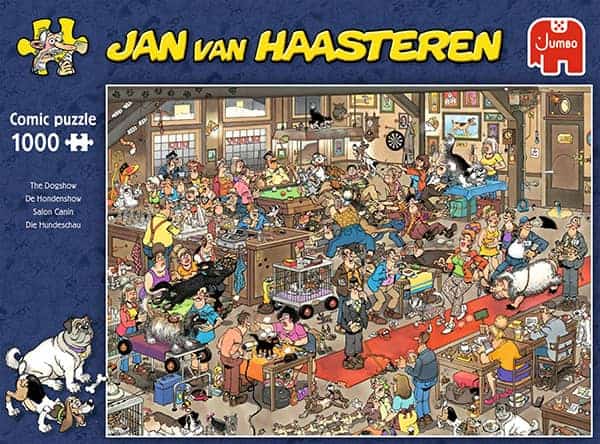 Jan van Haasteren The Dogshow -palapeli on julkaistu jo aiemmin, mutta nyt sitä valmistetaan jälleen. Koiranäyttely-palapelin kuvittaja Jan van Haasteren on tunnettu hollantilainen taiteilija, joka on erityisen tunnettu humoristisista ja yksityiskohtaisista piirroksistaan. Hänen palapelinsä ovat saavuttaneet suosiota ympäri maailmaa.