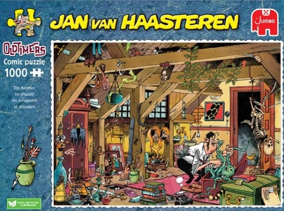 Jan van Haasteren Oldtimers Bachelor palapeli ja muut hauskat koottavat: Jan van Haasteren pelit palakoossa 150-2000 palaa. Van Haasteren kuvitukset on innostavaa koottavaa esimerkiksi peli-illassa tai perheen yhteisenä yhdessäolon hetkeksi. Palojen etsiminen ja samalla jutteleminen lisää sosiaalisia suhteita ja on mukavaa ajanvietettä.