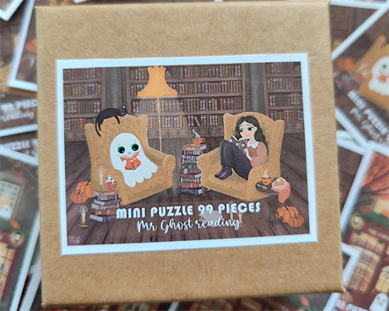 Mr Ghost reading -palapeli 99 palaa on ranskalaisen La Fabrique a Puzzles minipalapeli.