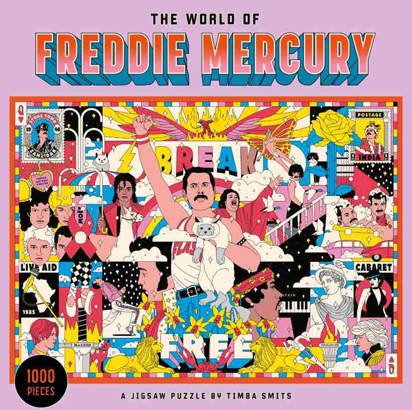 Yksityiskohtaisesti kuvitettu palapeli on täynnä viittauksia Mercuryn elämään, musiikkiin ja lähipiiriin. Kokoamisen edetessä esiin nousevat Queenin kappaleet, ikoniset esiintymiset, ystävät, yhteistyökumppanit ja Freddie Mercuryn rakkaat kissat. Timba Smits’n kuvitus on runsas ja kerroksellinen, mikä tekee kokoamisesta palkitsevaa ja pitkäkestoista.