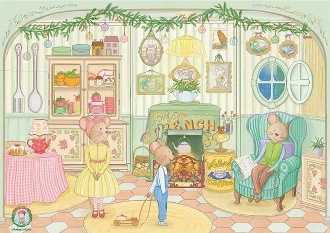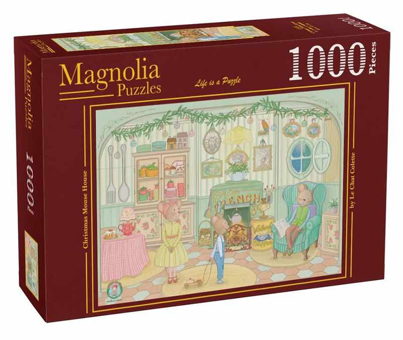 Magnolia Christmas Mouse House palapeli 1000 palaa on Le Chat Coletten kuvittama joulupalapeli, jossa hiiriperhe on valmistautunut joulun viettoon. Isä-hiiri on tosin nukahtanut nojatuoliin.