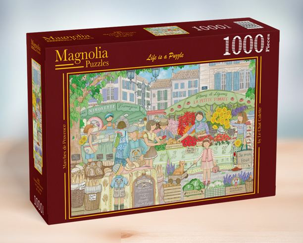 Magnolia Provence markets 1000 palaa kokoamista, siirtämistä ja säilyttämistä helpottavat alustat ja palapelimatot sekä palojen lajittelukaukalot ja palapeliliimat löydät palapelitarvikkeita esittelevältä sivulta.