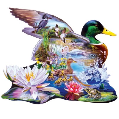 Woodland Ducks palapeli 500 palaa on MasterPiecen muotopalapeli, jonka kuvassa ovat linnut, kukat ja sammakko. Tämän muotopalapelin on kuvittanut Steve Crisp.
