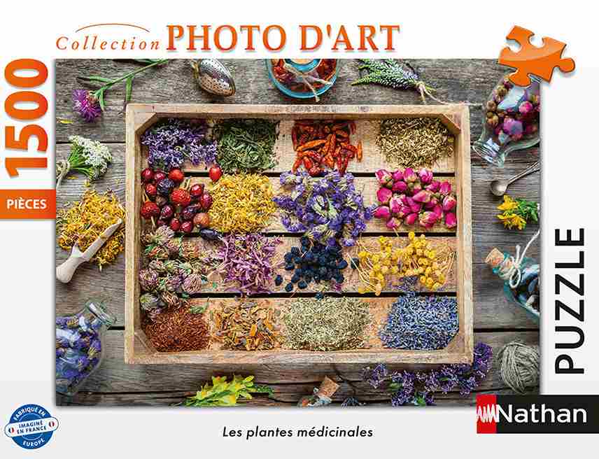 Tämä Lääkekasvit -palapeli kuuluu Nathanin aikuisten palapelivalikoimaan ja on valmistettu Saksassa. Valmis palapeli on kooltaan 1000-palaista suurempi eli valmis koko noin 84 × 60 cm.