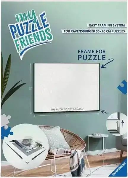 Ravensburger palapelikehys 70 x 50 cm on sopiva palapelille, jonka koko on korkeintaan 70 x 50 cm.
