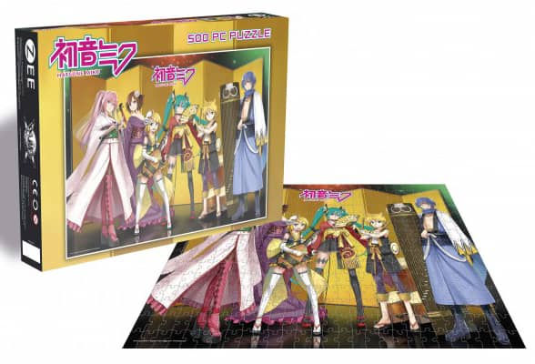 Hatsune Miku ryhmänsä kanssa 500 palan palapelissä. Tämä anime-aiheinen palapeli sopii valmiina vaikka tauluksi.