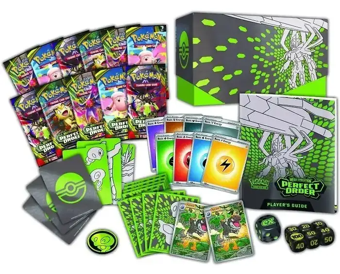 Pokémon TCG: Mega Evolution – Perfect Order Elite Trainer Box on kattava aloitus- ja keräilypaketti Pokémon‑keräilykorttipelin harrastajille. Elite Trainer Box sisältää runsaasti Perfect Order (ME03) ‑sarjan boostereita sekä kaikki keskeiset tarvikkeet, joita tarvitset pelaamiseen, korttien säilytykseen ja kokoelman kartuttamiseen.