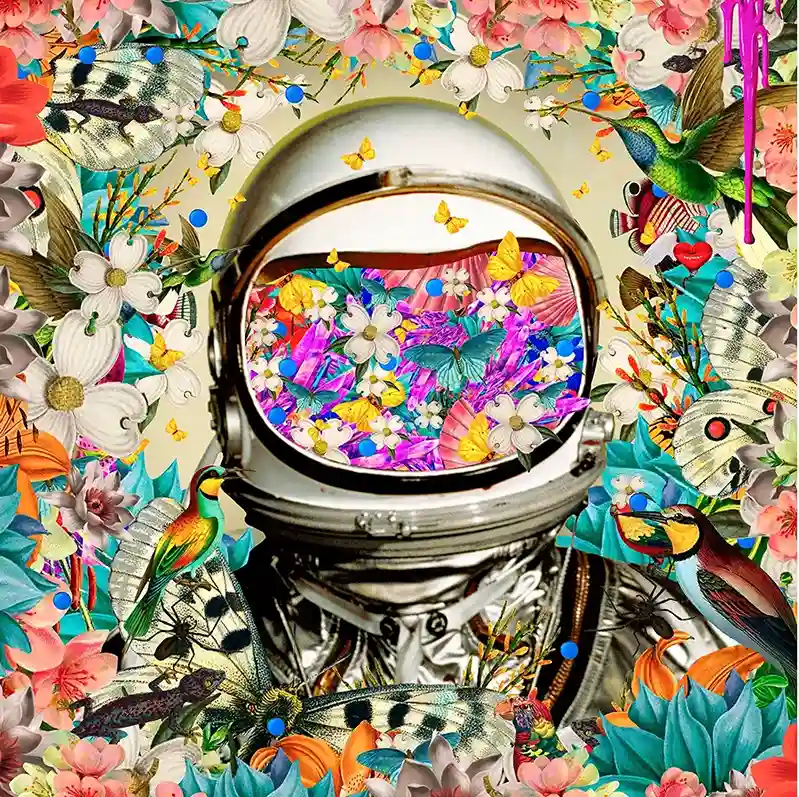 Astronautti-palapelin kuvittaja Krovblit on kanadalainen taiteilija, joka saa ideoita vanhoista kirjoita ja lehdistä.