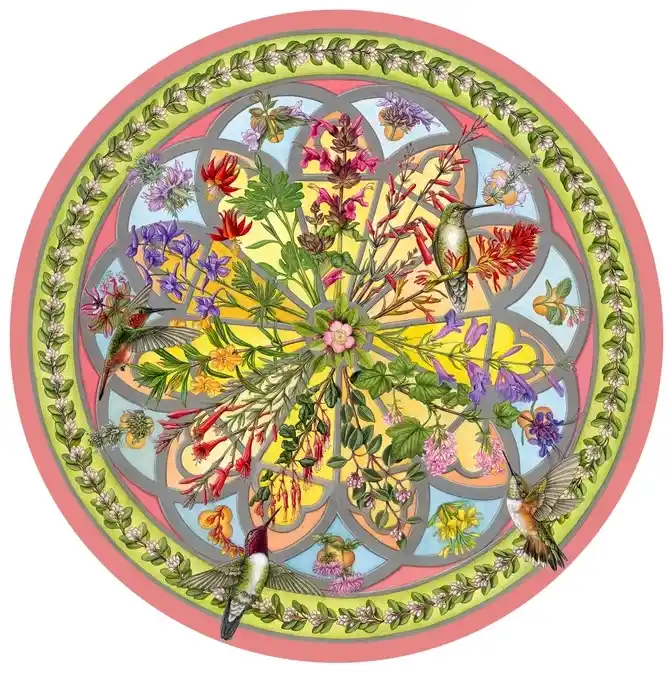 Palapelin keskiössä on kompassiruusua muistuttava, ympyrän muotoinen sommitelma, jossa kukat, lehdet ja kolibrit muodostavat harmonisen kokonaisuuden. Teos ammentaa luonnon rytmistä ja pölyttäjien liikkeestä.
