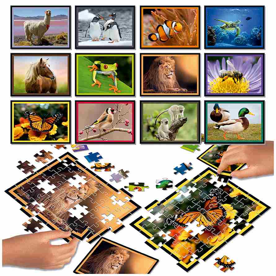 - 12 uniikkia palapeliä, joissa kussakin 42 palaa. Yhteensä paloja on 504