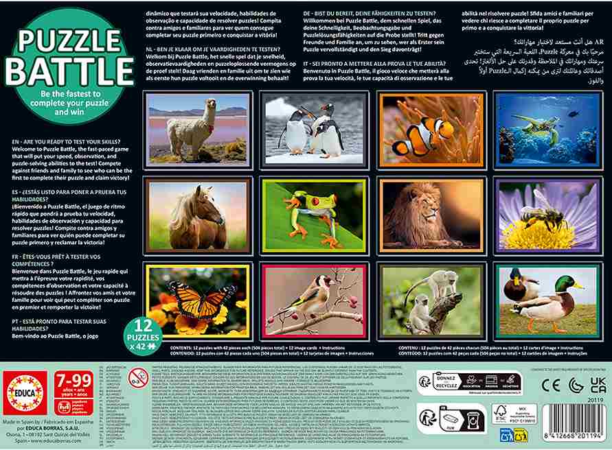 Puzzle Battle Natura palapelit 12×42 palaa on palapelikilpailu, jossa nopein voittaa. Sopii lapsille ja aikuisille, jotka haluavat harjoitella palapelien nopeaa kokoamista.